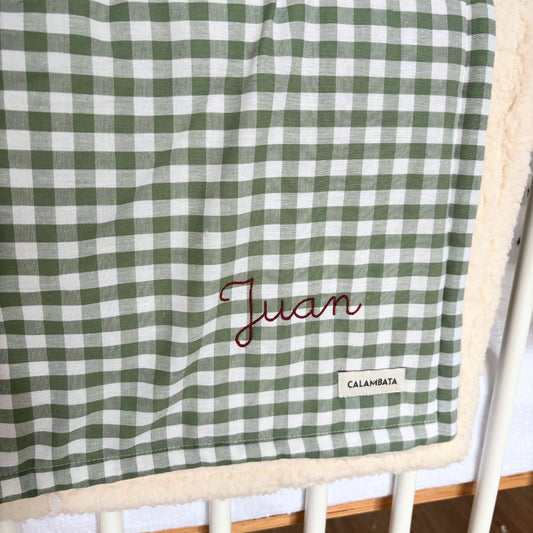 Manta borreguito vichy verde nombre Juan