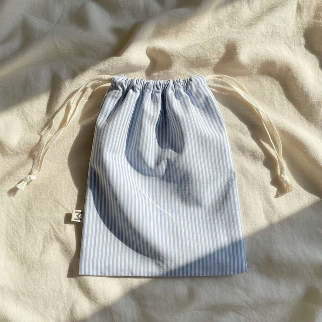 Tiene doble asa de algodón para cerrar y poder llevar de la mano si se quisiera.