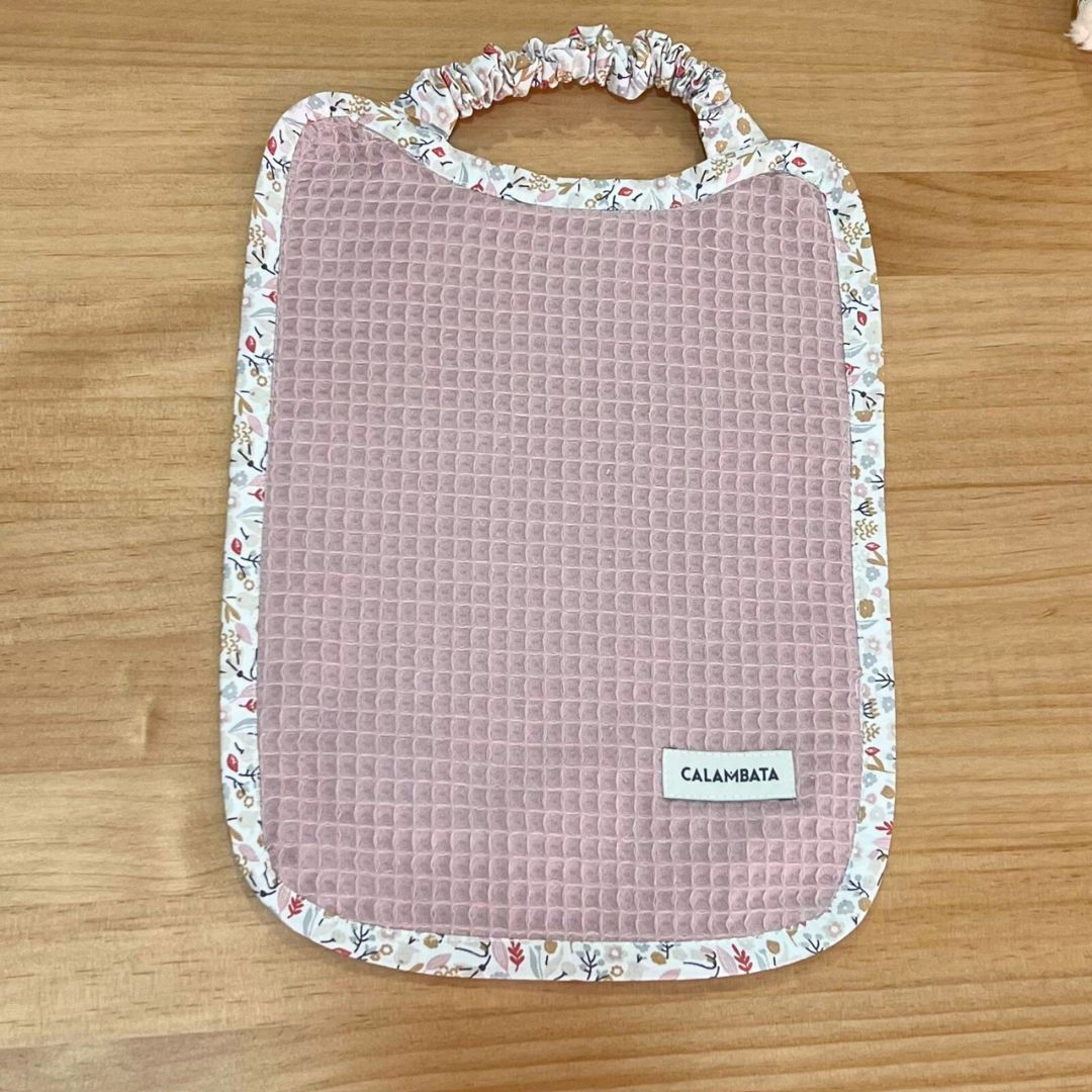 Práctico babero de toalla de wafle super absorbente con reverso impermeable.