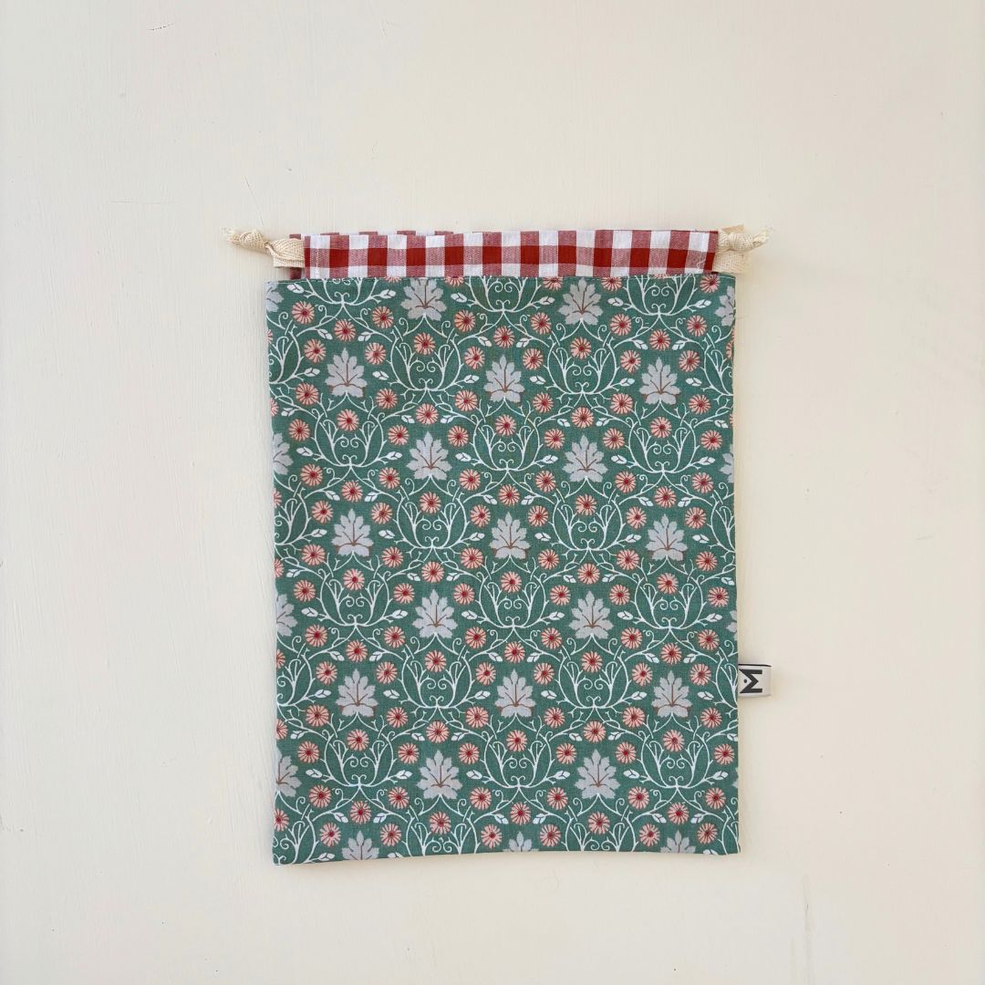 Tiene doble asa de algodón para cerrar y poder llevar de la mano si se quisiera.