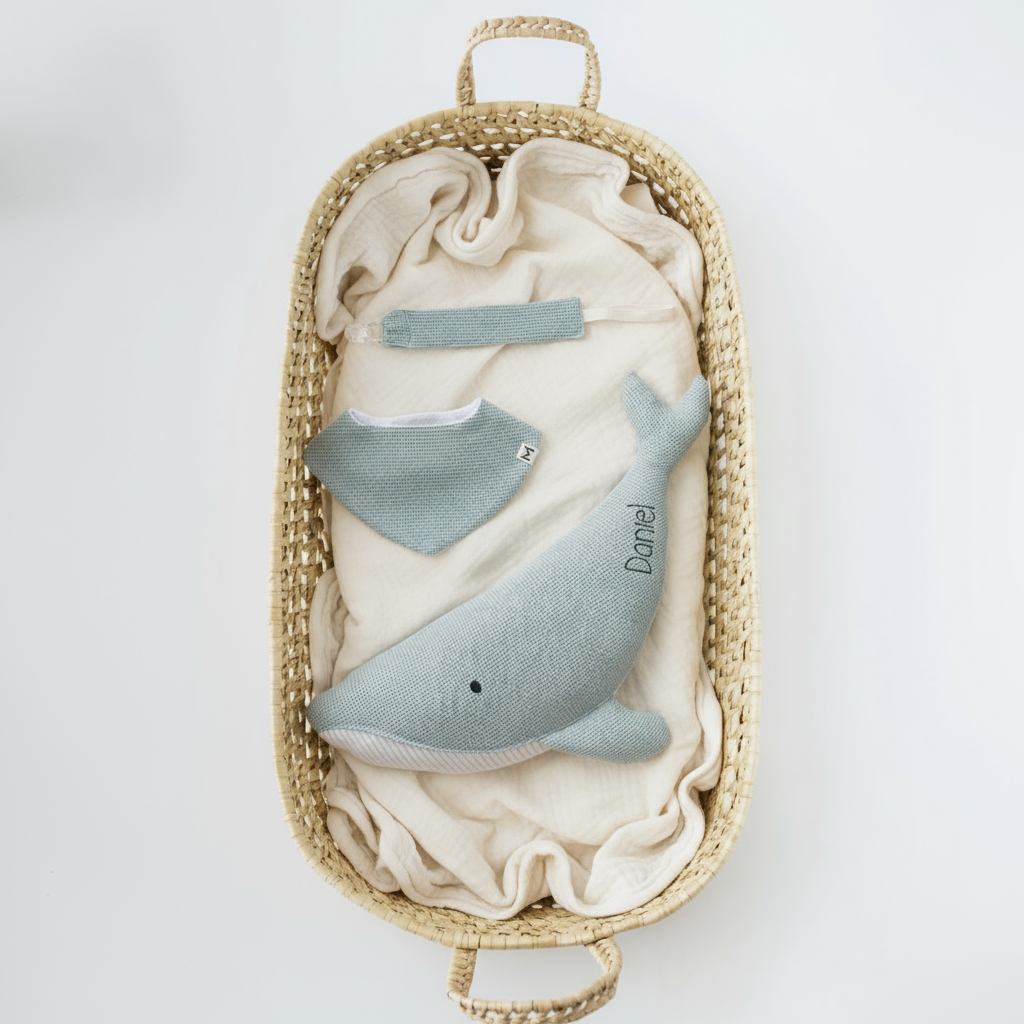 Regala la ballena Susi personalizada con el chupetero a juego.